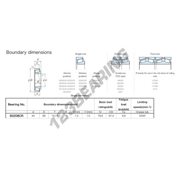 Das Kegelrollenlager, bekannt als 30208-CR-JTEKT JTEKT, hat einen Innendurchmesser von 40 mm, einen Außendurchmesser von 80 mm und eine Dicke von 19.75 mm.