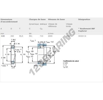 Das Kegelrollenlager, bekannt als 30324-J2-SKF SKF, hat einen Innendurchmesser von 120 mm, einen Außendurchmesser von 260 mm und eine Dicke von 59.5 mm.