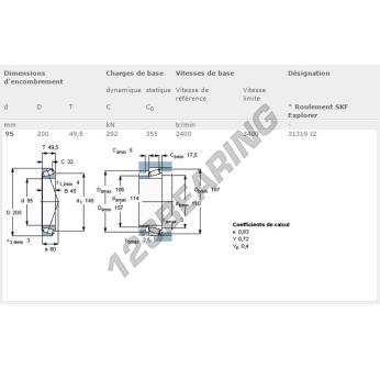 Das Kegelrollenlager, bekannt als 31319-J2-SKF SKF, hat einen Innendurchmesser von 95 mm, einen Außendurchmesser von 200 mm und eine Dicke von 49.5 mm.
