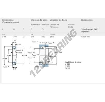 Das Kegelrollenlager, bekannt als 31328XJ2-SKF SKF, hat einen Innendurchmesser von 140 mm, einen Außendurchmesser von 300 mm und eine Dicke von 77 mm.