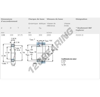 Das Kegelrollenlager, bekannt als 32226J2-SKF SKF, hat einen Innendurchmesser von 130 mm, einen Außendurchmesser von 230 mm und eine Dicke von 67.75 mm.
