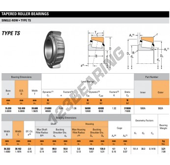 Das Kegelrollenlager, bekannt als 590A-592A-TIMKEN TIMKEN, hat einen Innendurchmesser von 76.2 mm, einen Außendurchmesser von 152.4 mm und eine Dicke von 39.688 mm.