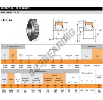 Das Kegelrollenlager, bekannt als HH221440-HH221410-TIMKEN TIMKEN, hat einen Innendurchmesser von 95.25 mm, einen Außendurchmesser von 190.5 mm und eine Dicke von 57.15 mm.