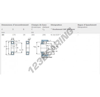 Das Rollenlager, bekannt als N316-ECP-SKF SKF, hat einen Innendurchmesser von 80 mm, einen Außendurchmesser von 170 mm und eine Dicke von 39 mm.
