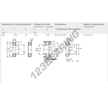 Das Rollenlager, bekannt als NU213-ECM-SKF SKF, hat einen Innendurchmesser von 65 mm, einen Außendurchmesser von 120 mm und eine Dicke von 23 mm.