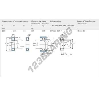 Das Rollenlager, bekannt als NU222-ECP-SKF SKF, hat einen Innendurchmesser von 110 mm, einen Außendurchmesser von 200 mm und eine Dicke von 38 mm.