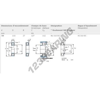 Das Rollenlager, bekannt als NU310-ECJ-SKF SKF, hat einen Innendurchmesser von 50 mm, einen Außendurchmesser von 110 mm und eine Dicke von 27 mm.