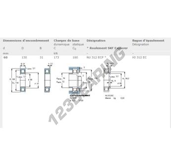Das Rollenlager, bekannt als NU312-ECP-SKF SKF, hat einen Innendurchmesser von 60 mm, einen Außendurchmesser von 130 mm und eine Dicke von 31 mm.