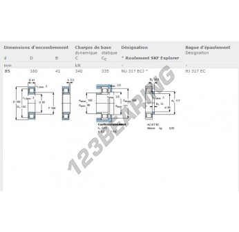 Das Rollenlager, bekannt als NU317-ECJ-SKF SKF, hat einen Innendurchmesser von 85 mm, einen Außendurchmesser von 180 mm und eine Dicke von 41 mm.