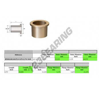 Das Bronze Gleitlager Mit Bund bekannt als BFAI22.225-28.575-41.275-3.175-19.05 Generisches, hat einen Innendurchmesser von 22.225 mm, einen Außendurchmesser von 28.575 mm und eine Länge von 19.05 mm. Sie wird aus hergestellt.