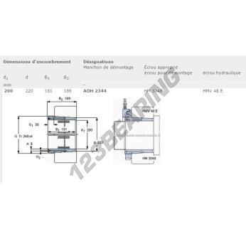 Das Spannhülsen, bekannt als AOH2344-SKF SKF, hat einen Innendurchmesser von 200 mm, einen Außendurchmesser von 220 mm und eine Dicke von 181 mm.