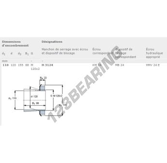 Das Spannhülsen, bekannt als H3124-SKF SKF, hat einen Innendurchmesser von 110 mm, einen Außendurchmesser von 155 mm und eine Dicke von 120 mm.