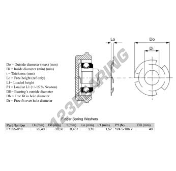 Das Federscheiben Für Kugellager mit der Referenz F1555-018 hat einen Innendurchmesser von 25.4 mm, einen Außendurchmesser von 39.5 mm und eine Dicke von 0.457 mm.