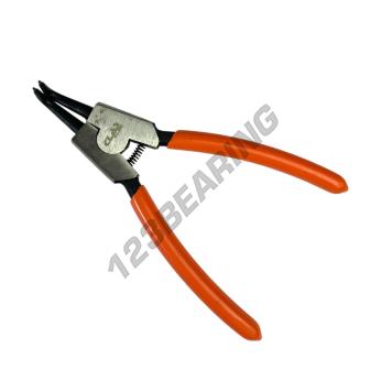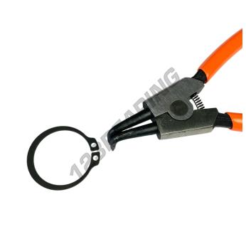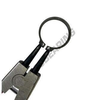 Gebogene Zange für äußere Sicherungsringe, hergestellt aus Stahl.