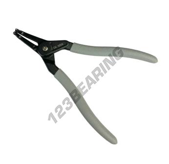 Gebogene Zange für äußere Sicherungsringe mit unsichtbarer Feder, hergestellt aus S45C und 48-52HRC Stahl. Die Spitzen sind aus 2HRC mit hoher Zugfestigkeit.